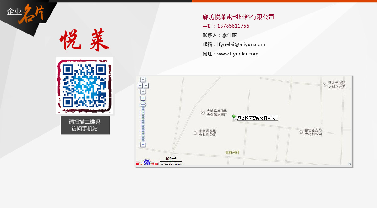 廊坊悅萊密封材料有限公司座落在河北省大城縣留各莊開發區,交通便利,地理位置相當優越。我公司擁有成熟的工藝和設備,企業規模、產品質量可靠。